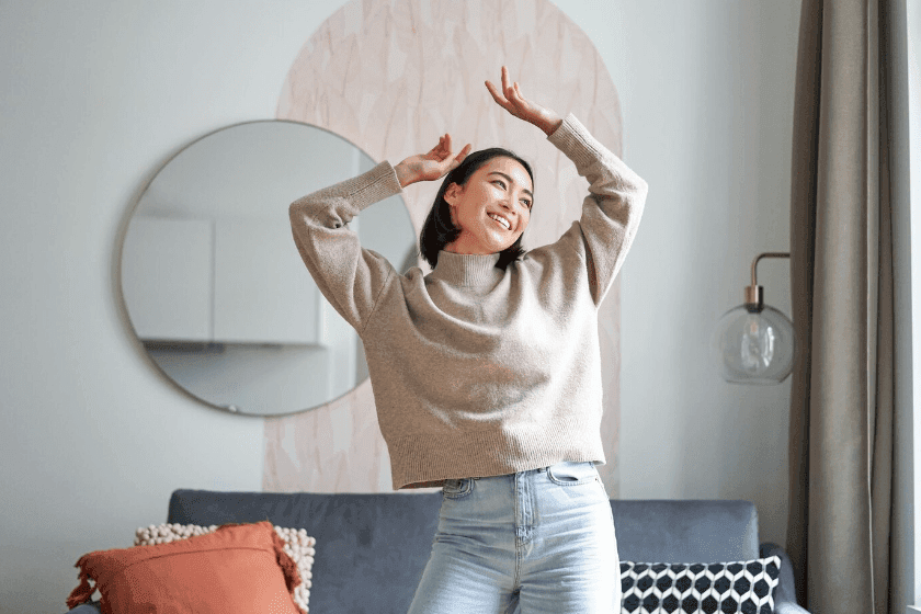 - Deja que cada parte de tu cuerpo se mueva espontáneamente y con libertad, como expresión y celebración del poderoso ser que eres. Explora nuevas formas de mover los hombros, los brazos, las costillas, la cadera, las rodillas, los tobillos y los dedos de los pies. Canta mientras te mueves.